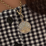 14k yellow gold and diamond and mother of pearl evil eye charm